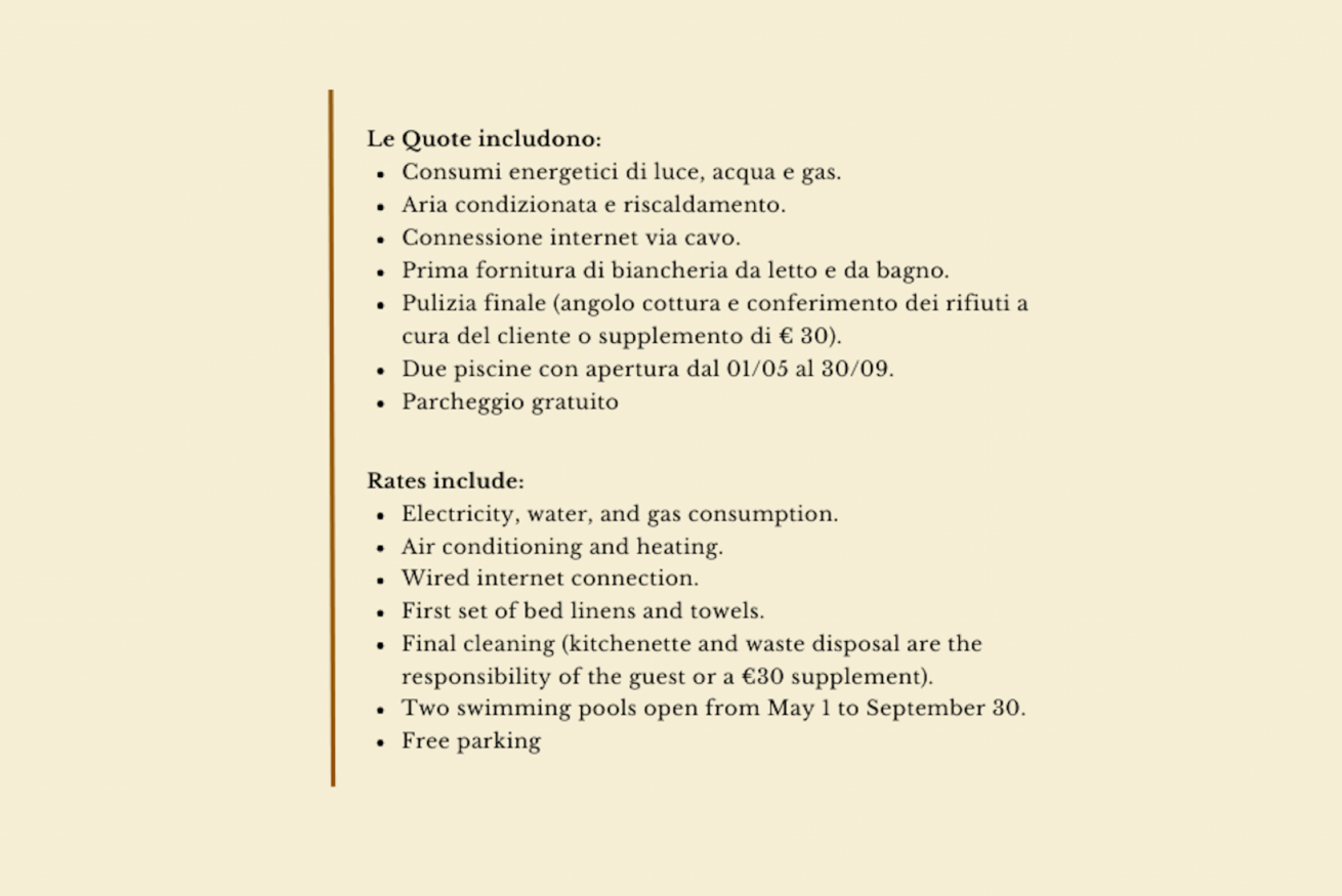 Prima di procedere all’acquisto di una vacanza, il Cliente prende visione dei posti disponibili nella Struttura Ricettiva e del prezzo stabilito per notte. Il prezzo è espresso in Euro ed è determinato sulla base della tariffa disponibile al momento della prenotazione, a seguito della quale, quest’ultimo verrà bloccato. In ogni caso IssTravel non sarà ritenuta responsabile di eventuali variazioni del prezzo applicate dalla Struttura Ricettiva o a seguito di ulteriori servizi richiesti al momento. Eventuali offerte speciali e promozioni sono esclusivamente limitate al periodo di tempo indicato nella pagina dedicata all’offerta di prenotazione.