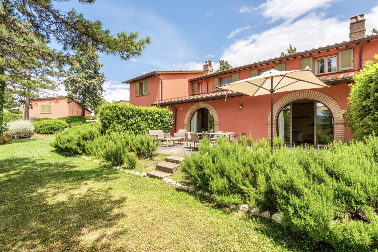 Il giardino e la terrazza privata offrono la splendida vista del lago e delle valli di Cortona e Montepulciano.