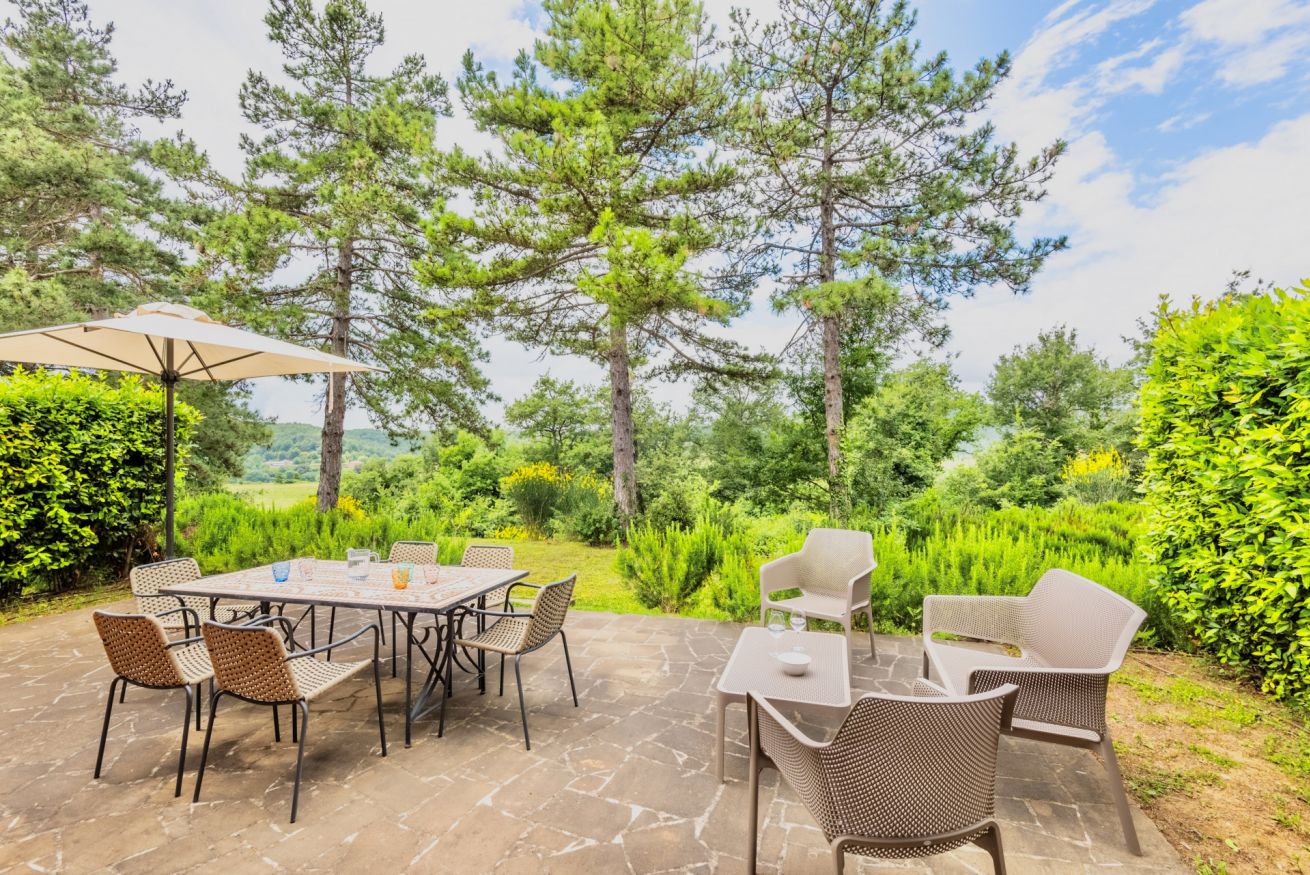 La terrazza privata al primo piano e il giardino privato arredato al piano terreno offrono la possibilita' di gustarsi la splendida vista del lago e delle valli di Cortona e Montepulciano.