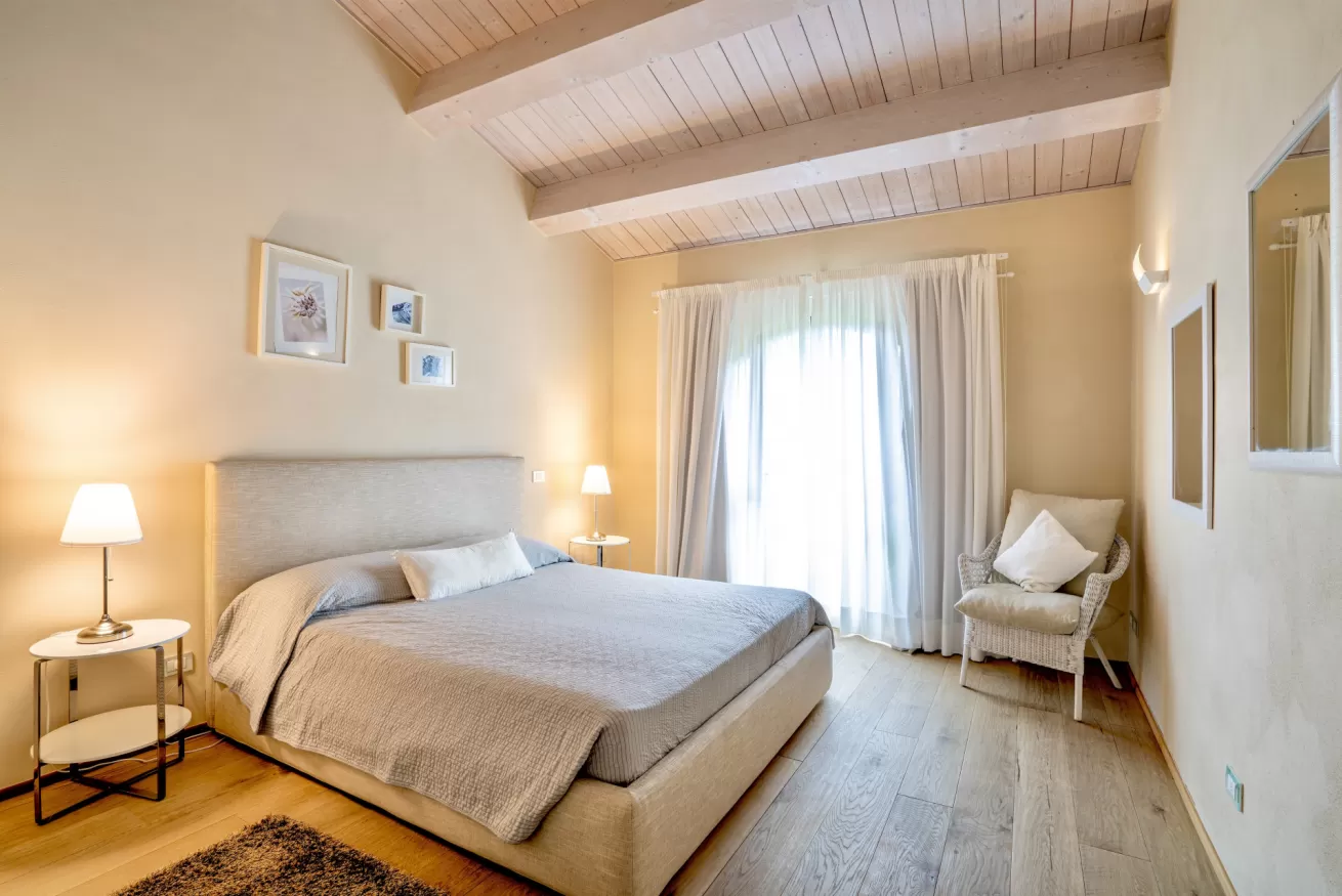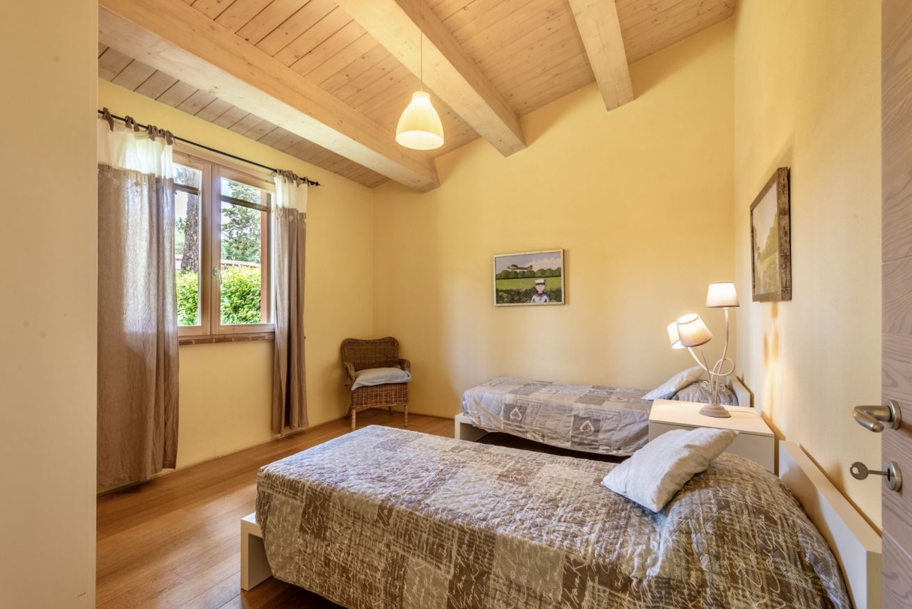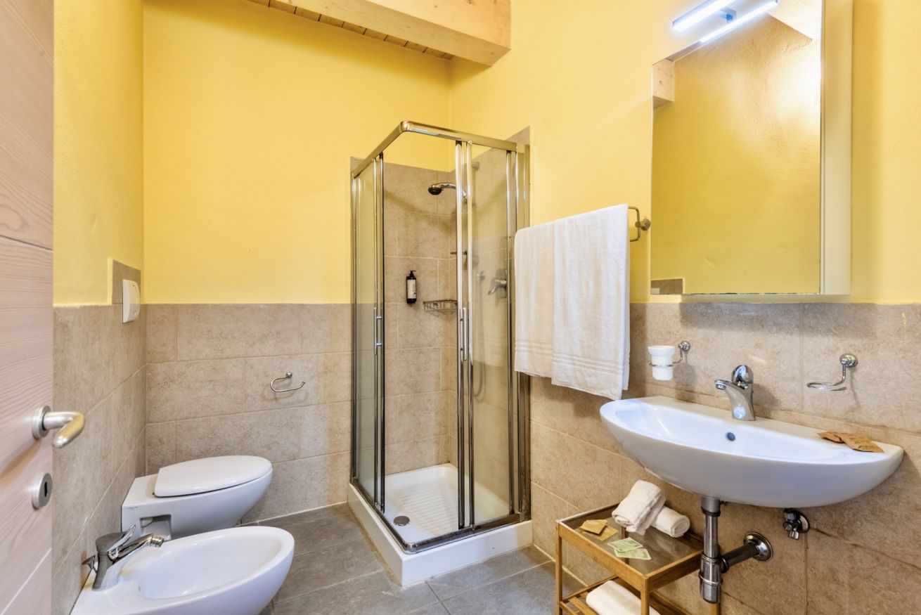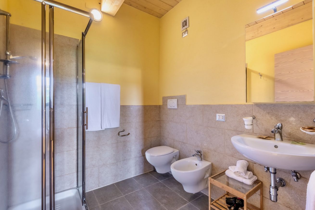 Al primo piano troviamo una camera matrimoniale con bagno privato con vasca e una camera doppia con bagno e doccia adiacente.