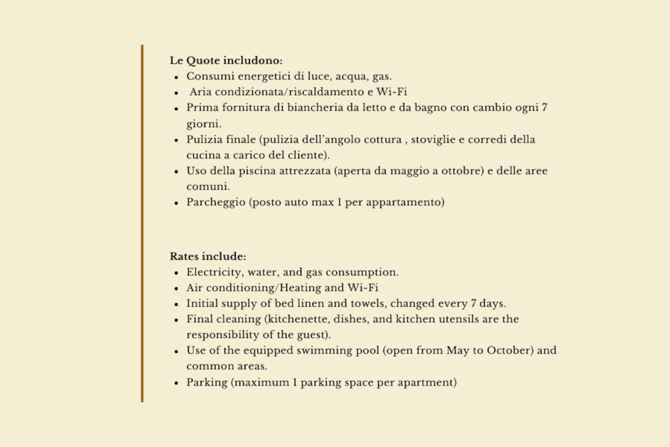 Prima di procedere all’acquisto di una vacanza, il Cliente prende visione dei posti disponibili nella Struttura Ricettiva e del prezzo stabilito per notte. Il prezzo è espresso in Euro ed è determinato sulla base della tariffa disponibile al momento della prenotazione, a seguito della quale, quest’ultimo verrà bloccato. In ogni caso IssTravel non sarà ritenuta responsabile di eventuali variazioni del prezzo applicate dalla Struttura Ricettiva o a seguito di ulteriori servizi richiesti al momento. Eventuali offerte speciali e promozioni sono esclusivamente limitate al periodo di tempo indicato nella pagina dedicata all’offerta di prenotazione.