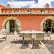 Il giardino privato arredato al piano terreno offre la possibilita' di gustarsi la splendida vista del lago e delle valli di Cortona e Montepulciano.