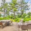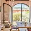 Zona pranzo interna ed esterna, una camera matrimoniale con bagno privato con vasca e un'altra camera doppia con bagno e doccia adiacente.
