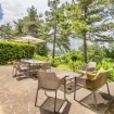 Il giardino privato arredato offre la possibilita' di gustarsi la splendida vista del lago e delle valli di Cortona e Montepulciano.