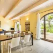 Zona pranzo interna ed esterna, due camere matrimoniali con bagno privato con vasca, una camera doppia o matrimoniale con bagno con doccia adiacente.