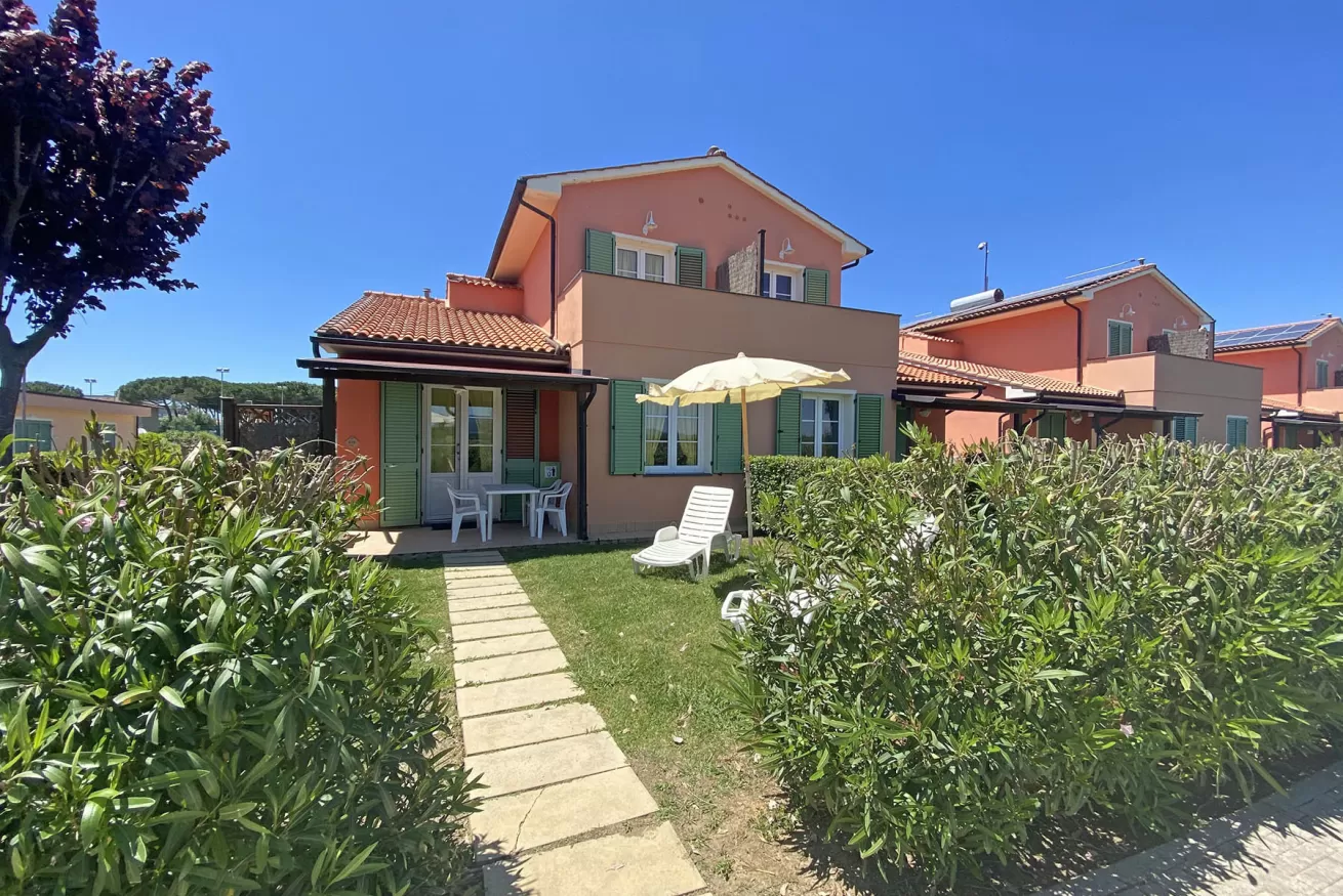 L'appartamento e' dotato di ampio giardino arredato con lettini e ombrellone e di un porticato con tavolo e sedie dove potersi rilassare o pranzare in tranquillita'.