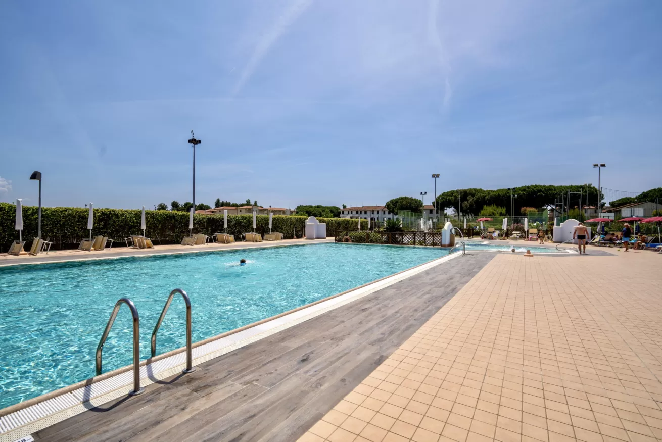 - area piscine per adulti (altezza 140 cm) e bambini (altezza 0-80 cm) con solarium attrezzato con ombrelloni, sdraio e lettini . E’ richiesto l’uso della cuffia obbligatoria.