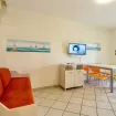 Appartamento al piano terra di 45 mq con zanzariere composto da soggiorno con TV satellitare, lato cottura, frigorifero con congelatore, forno a microonde e lavastoviglie.
